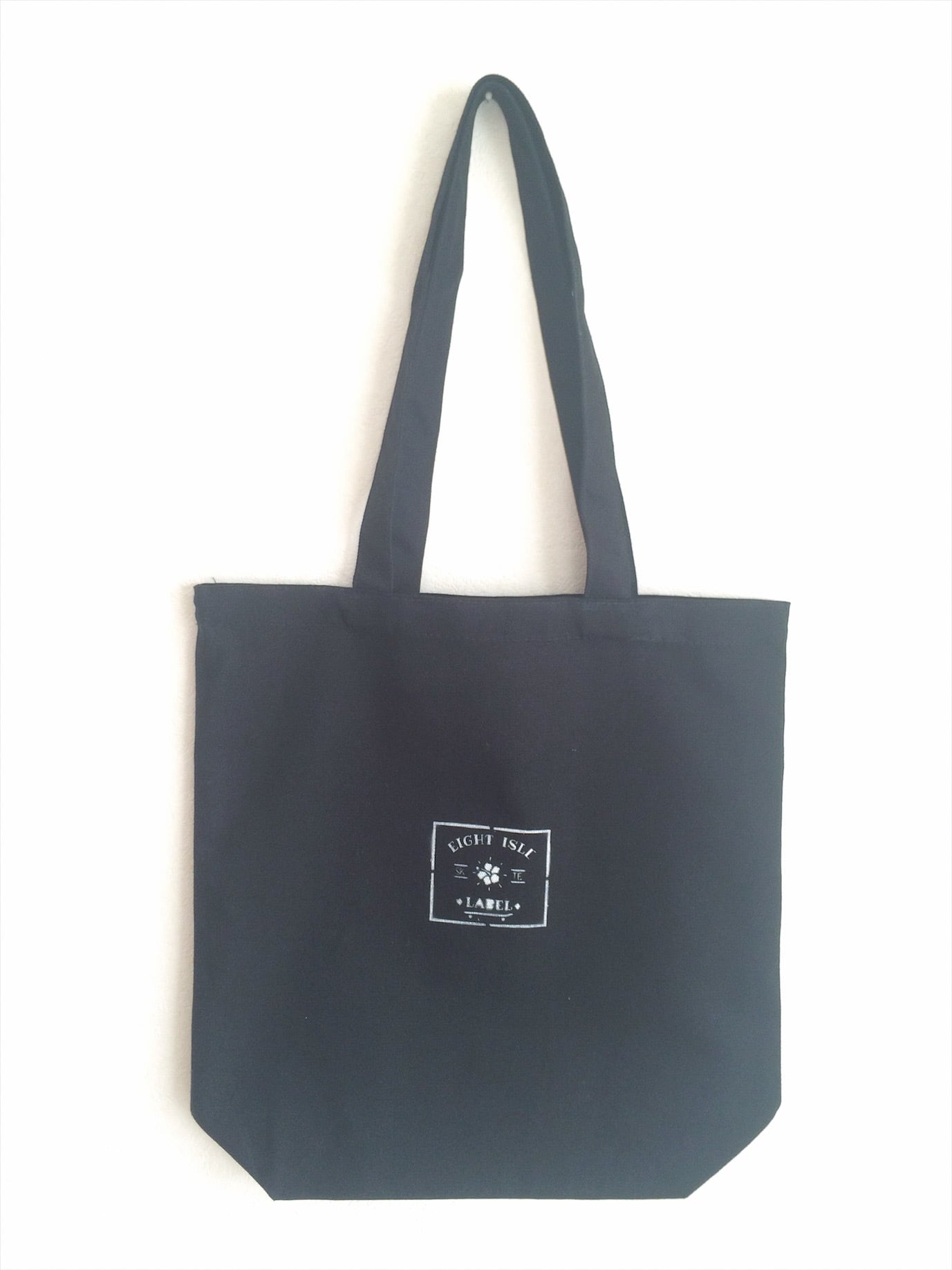 10オンス キャンバス生地 color: ブラック Size: 横34.5cm × 高35.5cm × マチ10cm 持ち手: 幅2.5cm 長さ56cm ステンシル スプレーペイント