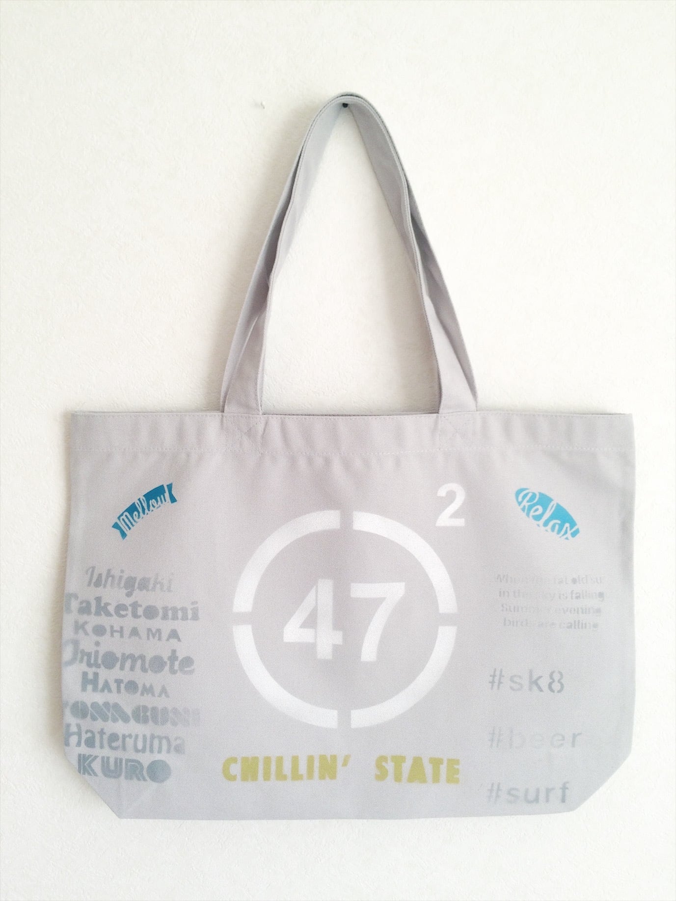 14.3オンス キャンバス生地 color: グレー Size: 横35cm × 高39cm × マチ10cm 持ち手: 幅3.5cm 長さ55cm ステンシル スプレーペイント